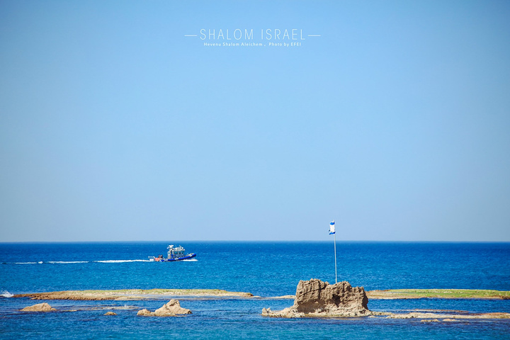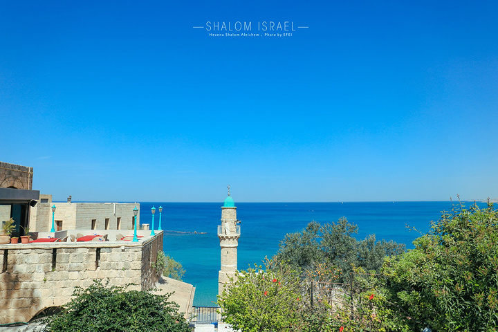 蔚蓝色的天空下,地中海的海水也格外的蓝,阳光的照耀下映衬着雅法老城金黄色的石头墙壁,分外悦目。