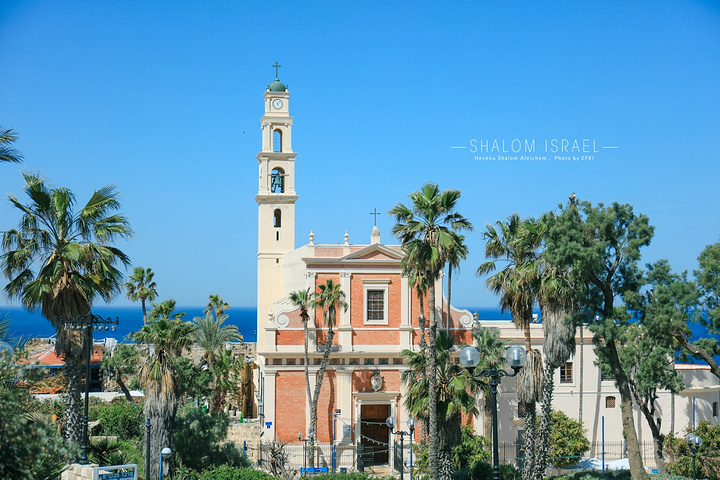 穿出小巷,便可以来到雅法的教堂前的小广场。今天阳光明媚,天气早已像夏天般的热情了。