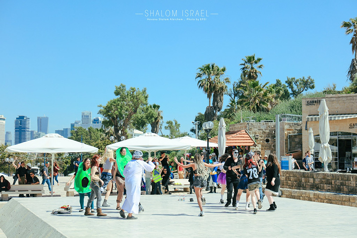 还没到广场就听到欢快的音乐声,广场上一群化着装扮的年轻人们正在跳舞。原来现在已经是犹太人的一个非常重要的节日普林节的欢庆日子了,据说要化妆欢庆,不醉不归,持续长达3天之久。