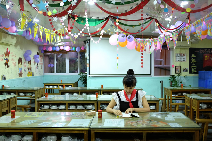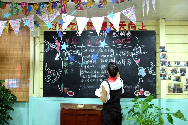 这是很有特色的一家小店,店内的称呼也都和学校一样,客人是同学、服务员是老师、收银员是班主任,点菜叫做写作业、买单还叫做付学费,当然还要自己倒水打饭。店里面的卫生水平一般,不过菜量挺大,还比较实惠。重点是比较有趣好玩啦!