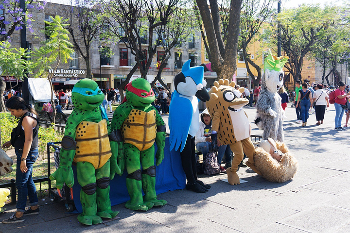 圆堂纪念碑, Rotonda de los Jaliscienses llustres, 罗马柱围绕而成的小公园。旁边有24座雕像,没有拍下来,有点类似于某不放假大学的逢开门必陨教授堂...剧院门口的忍者神龟,丑萌系...来自游记Guadalajara, 遇见龙舌兰之旅