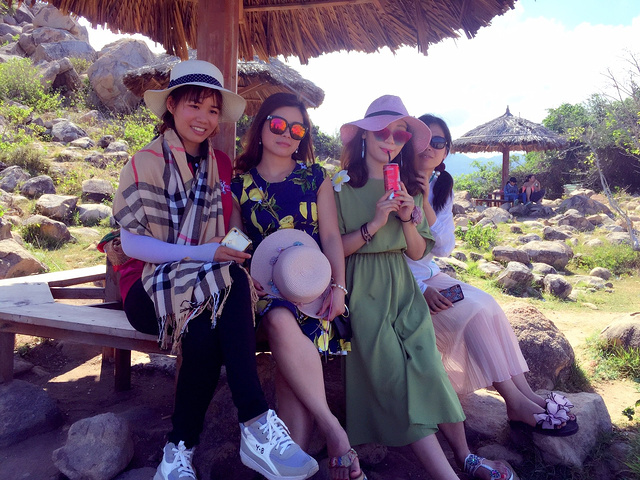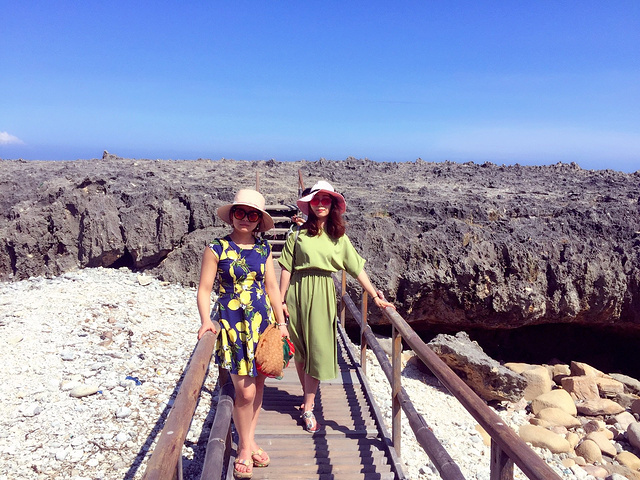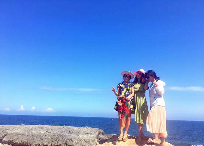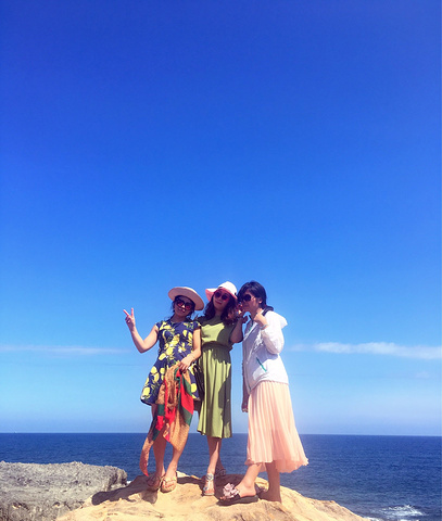 海边,吹着海风,看着天空和大朵的云,等待海浪冲出礁石的瞬间,满天飞溅的浪花,扑面而来的水汽,拍打礁石的声音,不必说话,只需拉着她的手,就是最浪漫的告白。只可惜,我们只有三女子相互告白了…