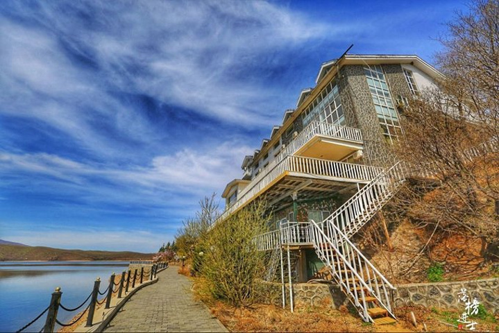 这里便是可以乘快艇游览百里长湖的地方。