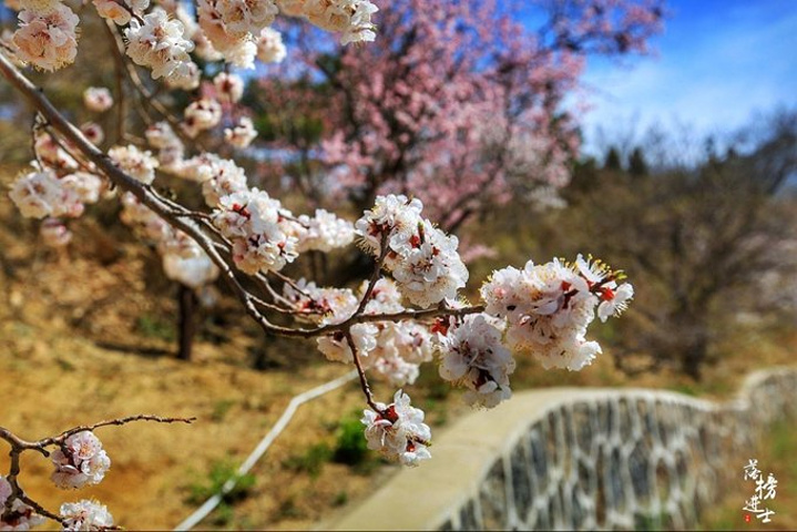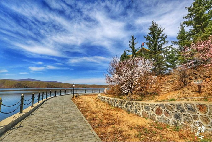 湖边的杏花和各种山花,在春日里竞相开放。