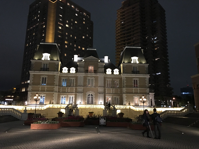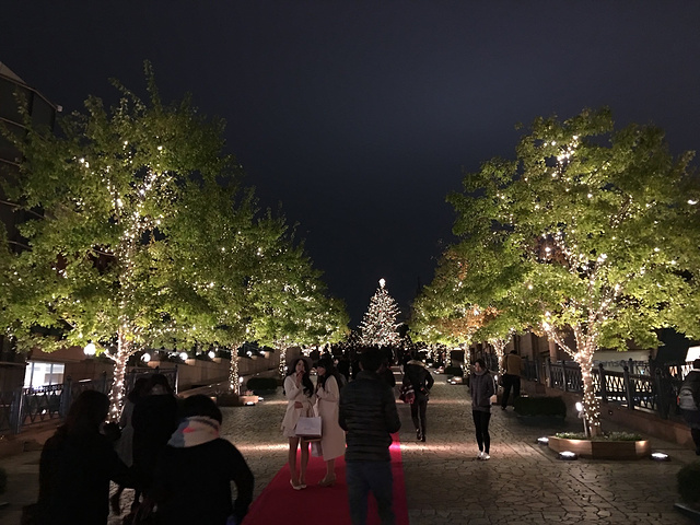 晚餐预约在19:30,天已经很暗,虽然有点飘小雨,有点冷,但圣诞装扮的恵比寿ガーデンプレイス却特别的温馨,让人觉得心里暖暖的。(ps:这里是日版流星花园,道明寺淋雨等杉菜的地方)已经点缀着小灯的树丛和一颗大🎄圣诞树把这个公园装饰的特别美,很多人都忍不住停下脚步,用手机记录下这一刻的美好,往远处看就能看到小城堡还有一盏水晶装饰吊灯,很美~