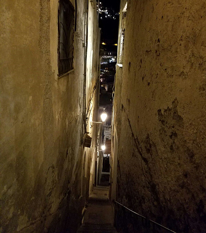 隔著那不勒斯海灣與那不勒斯遙遙對望,晚上可看到它的燈光。大家梳洗之後,精神蠻好,看一下時間,是時候就駕車到Positano吃晚飯,大家順道走一走聲稱是人生必駕的其中一條美景車道 - Amalfi Coast。車程約40分鐘,心中一直想提出這一程由我來駕駛,由於在香港都有超過10年沒有自駕,雖然出發前已找教車師傅補了4次堂,但信心都是不大,最終還是做回導航員,哈哈哈!