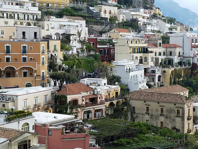 Positano原是一個在山谷中的小山城,每間房屋都是靠得緊緊的,山上山下除了車道連接外,還有不了窄長的階梯相連,現在全鎮都已成了一個旅遊熱點,商店都是售賣些旅遊紀念品為主,在Mapsme地圖上可看到很多小停車位,原想有可能找到便宜的路旁的泊車位,但沿路下來看到的情況,最終還都是放棄了這個想法,見到了私營停車場而且又接近我們計劃去晚餐的餐廳,就決定放下轎車,這個泊車費真是蠻高,在這裡的私人停車場泊車,由於車場通道及泊車位都很窄,車匙需交由車場職員,由他代為停泊,看電易及有多資料都說停車泊位都是由黑社會支配,看他們打扮也很像,要讚賞的是他們辦事十分利落及有效率,交匙給站在車場前的頭頭,給我們抄下車牌號及詢問大概泊多久後,就交一張小紙條給我們,是手寫的,哈哈...! 這樣就留下我們的轎車去晚飯了。