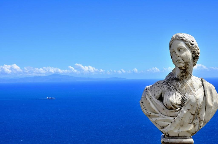 藍天藍海下的Villa Cimbrone觀景台其中一個半身頭像裝飾 (網上截圖)