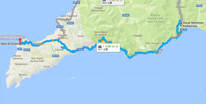 沿Amalfi Coast到開始進入上山小道,景觀由海天一色轉變成綠嫩環抱,居高盡覽山下城鎮的風光,