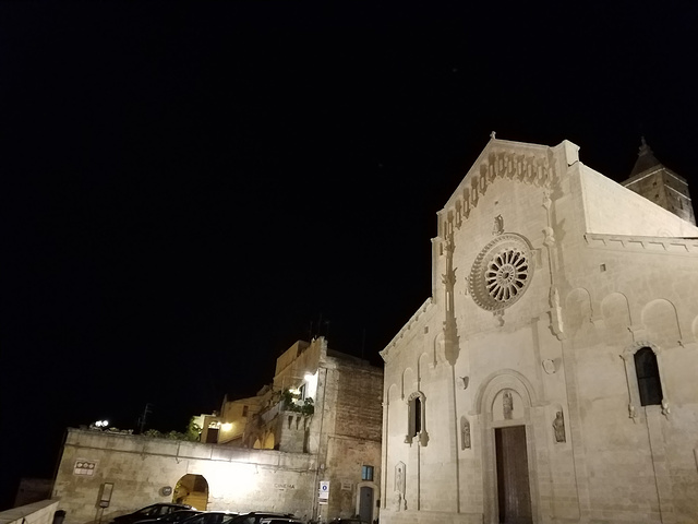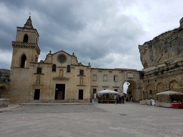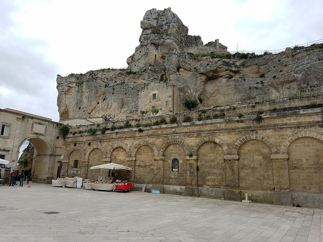 稍時休息後,亦是時候爭取時間,在ZTL限時將車駛離古鎮範圍前,駕車到洞窟教堂( Chiesa di San Pietro Caveoso ),因那處有停車場,下車後發覺教堂已關門,也只好在教堂周圍逛逛,教堂廣場旁剛好有幾個紀錄品小攤檔,當然是女士們必然駐足的地方,最後也買了不少小紀念品。時已近黃昏,感覺氣溫明顯下降不少,以為是山區現象,購買紀念品時與小販溝通,知道天氣有變,說今晚氣溫會下降至攝氏4、5度,今早從Sorrento過來時還是25、26度呀!!!