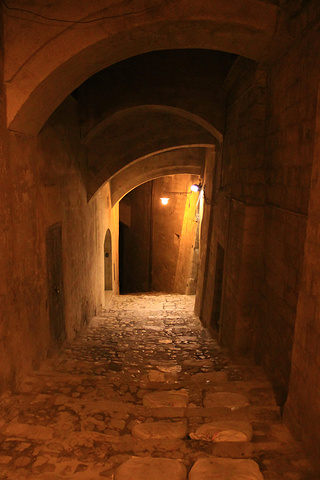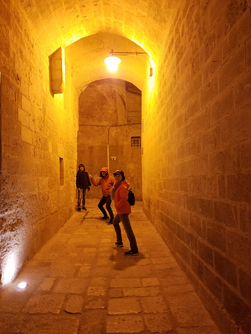 晚飯後,時間還不太夜,大家都滿有興志出去在寒夜中作古道探索,大家就將所有保曖的衣物都穿戴上身就出門了。街巷泛著昏黃的燈光,古鎮杳無人煙,四周就好像被低溫冷凍得凝固了一樣,我們幾個就好像小孩般在寧靜的小巷中穿梭,感受久遺了的午夜空蕩蕩的空間。