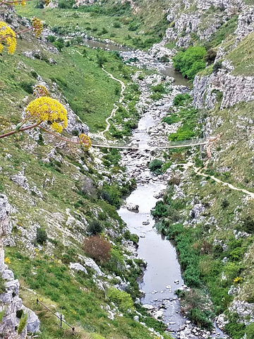 在河谷中黃樹旁有一條吊橋,通各對岸的山洞古蹟。