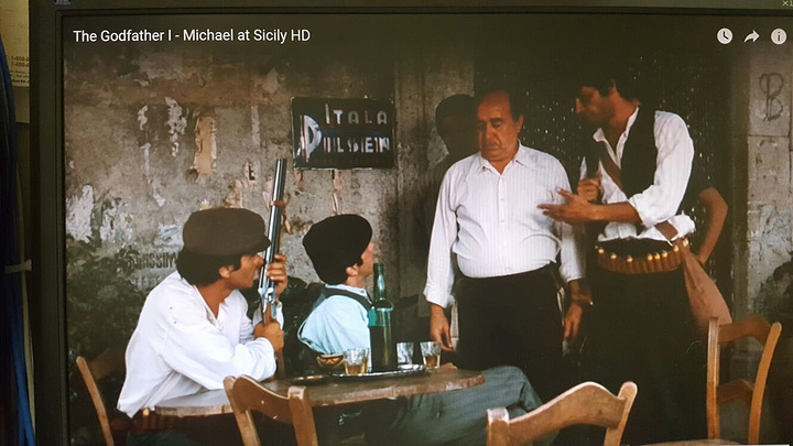 交回鎖匙後就向Sovoca進發了,這個景點是我們的男旅伴極力推薦的,是教父(Godfather)第一集及第二集都有出現的場景。Sovoca是山上的一個寧靜的小鎮(若無遊客到訪),我們是今天最早到達這裡的遊客,環境非常寧靜,在村口的小酒吧就是教父Vito Corleone最小的兒子Michael回鄉躲避仇家追殺時,在此跟第一任太太的父親認識的地方,頭圖就是這酒吧。