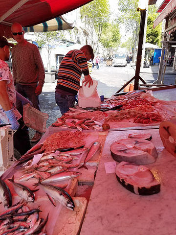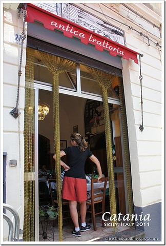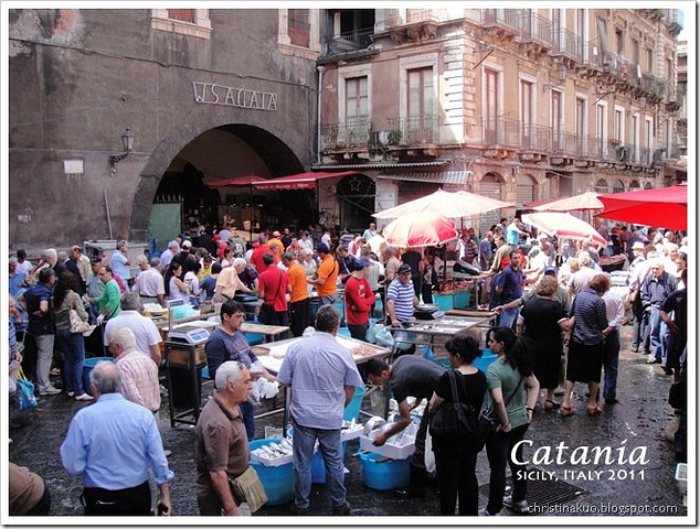 到達了Piazza Del Duomo (大教堂廣場),雖然圍繞廣場周圍都是Catania主要景點,但時間已是1時多,都是祭五臟廟為重。在Fontana dell'Amenano (阿梅諾諾噴泉)穿入漁市場,我們的目標是百年老店La Paglia Antica Trattoria,就在漁市場旁,到達時漁市場營業時間已過,旁邊的市場[也大半休市了,幸好餐廳也過了高峰期,不用等侯也可入座了,可惜見到冷盤區已沒有多少選擇了。點完餐,趁著未有食物時,走到外面拍一下嘗未收市的兩三漁檔,其實這是一個很大及熱鬧的市場,可惜時間配合得不好,明天也有長行程,未能再來感受市場動感的氣氛了。