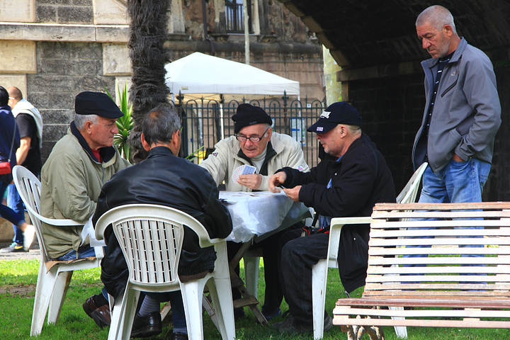 在公園一角打牌的老人