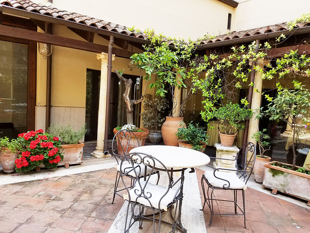 由於Cataina是一個城市,在城中的古城範圍大多是ZTL,所以我們進入Cataina範圍後就格外留意交通標誌。到達酒店時還未到check-in時間,照舊辦理完手續、寄存行李及交出車匙,待他們稍後將車泊地地下停車場,之前決定預訂這酒店時,除因價格合理及位置靠近市區景點外,還有一個雅致的花園中庭。我們在離開前當然要在這花園遊玩一下呢!