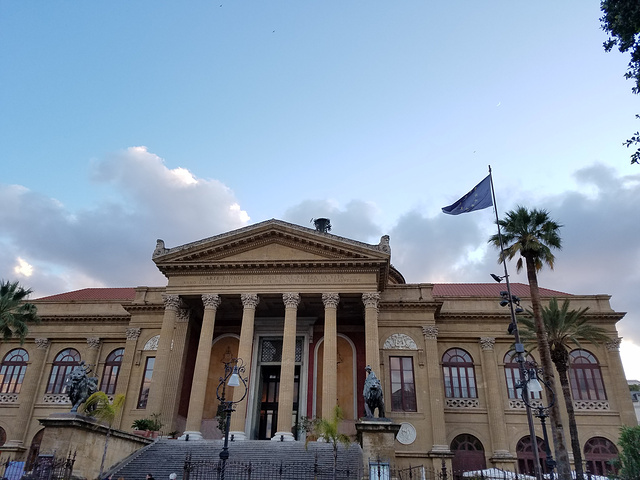 回到B&B後,在房間的陽台完成了今早的三文治,離開前與今早準備早餐給我們的中年婦人閒話家常了一會,因為他不懂英語,我們用上了Google翻譯與她溝通,原來之前見的美少女是她排行第三,也是最小的女兒,她們一家也是住在這兒的。是時間起行了,因為我們之前已預購了今晚八點在巴勒莫大劇院看詠嘆劇。