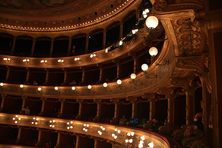 從我們旅館走到Teatro Massimo只需5分鐘,在附近一間Cafe吃了一些輕食,也是進場的時候了。今晚觀賞的劇目是Bach (巴哈)的 La Passion secondo Giovanni,這劇目其實不怎樣吸引,購票前在網上搜集了關於此劇甩的內容,此劇大部份是詠嘆調,內容是跟復活節參加天主教崇拜時的讀經一樣,演譯門徒彼得受試探及耶穌基督受審判的過程,較特別是表演服飾及舞台是以現代型式演出。但還是購票原因是,只是入劇院參觀的費用也是此劇票價的一半,同時也可在這樣的劇院中感受一下,這是我第二次在古典劇院中欣賞表演,而第一次是在俄羅斯聖彼得堡欣賞芭蕾舞表演,非常精彩,謝幕時有很多觀眾向台上拋鮮花,今次表演也有,不過沒有那麼踴躍。