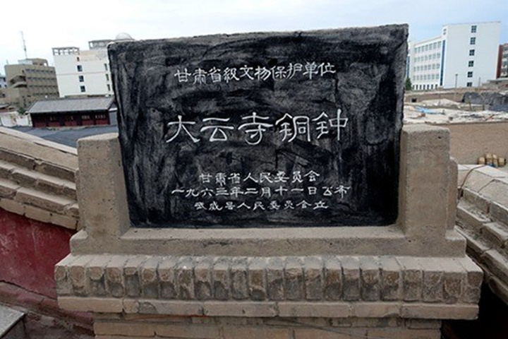 古钟楼上悬有大云铜钟,铜钟通高2.26米,口径1.15米,厚12厘米,重约5吨。钟体形古朴,声音雄浑洪亮,敲击时远闻数十里。“大云晓钟”为著名的“凉州八景”之一。因钟体上没有铭文,故大钟铸造年代不详,专家从钟体造型和所饰图案分析,为唐代铜钟。乾隆二十五年(1761)重修大云寺碑记称此钟“若铜、若铁、若石、若金,兼铸其中,真神物也。如响震之,则远闻数千里,发人深省,为郡脉之一大助也。”