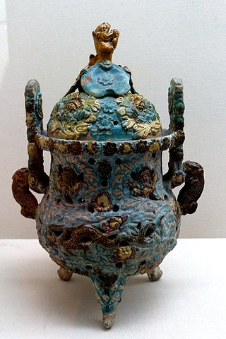 三彩镂空带盖熏炉(元代)