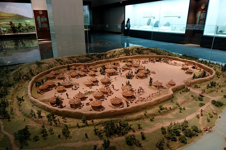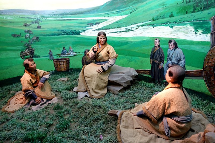 先民衣食居住场景。距今六千年前的新石器时代中期,草原先民的生活还比较原始。