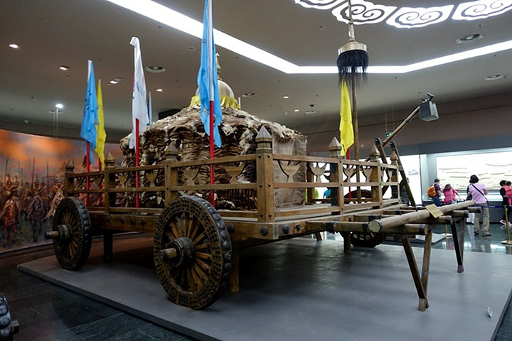 成吉思汗的大帐(复原品),上面都是整张的虎皮铺盖而成