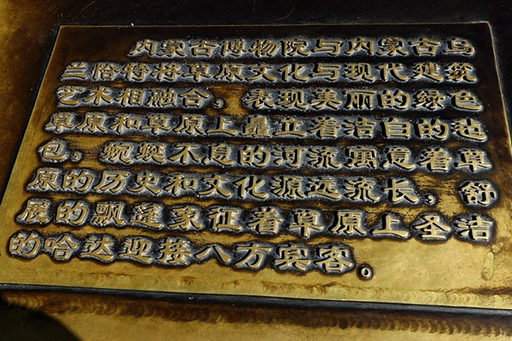 位于博物院的正门通道旁的民族团结宝鼎。这是2007年为庆祝内蒙古自治区成立60周年,中央人民政府赠送给内蒙古自治区的。