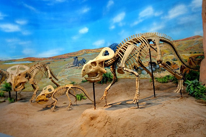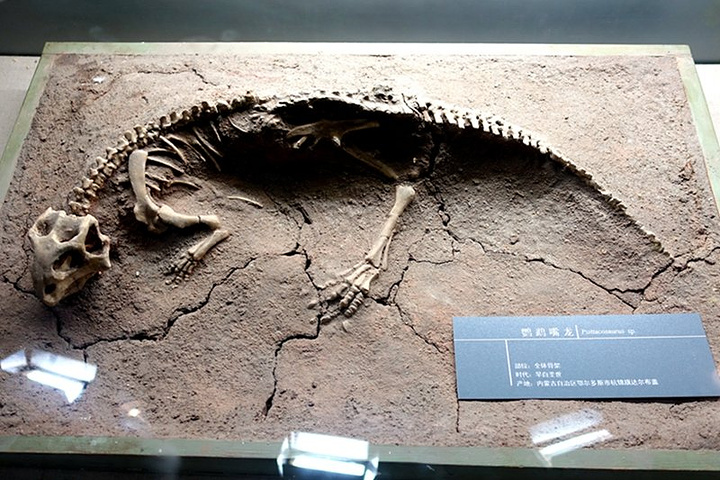 原角龙 。原角龙是种小型恐龙,但头颅占了很大一部分。在我国内蒙古地区曾发现大量原角恐龙的骨骼、巢穴、蛋及小恐龙的化石,因而轰动全世界。