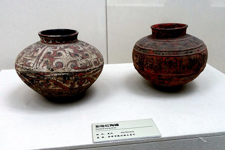 彩绘红陶罐(夏代)