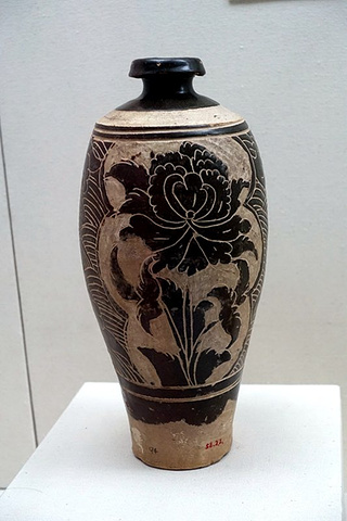褐釉剔牡丹鹿纹梅瓶(西夏)