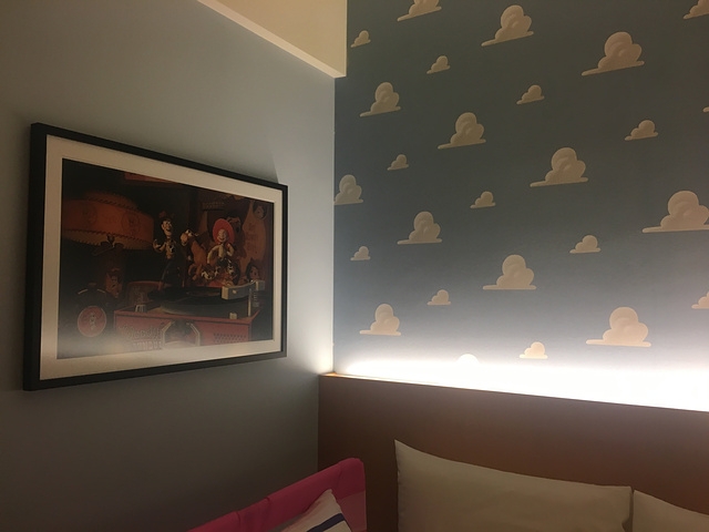 中午1点40的航班飞上海,熟悉鑫妈的朋友都知道,给小宝贝订航班也是有讲究的,主要要根据小朋友的作息时间来安排。鑫宝一直有午睡的习惯,哪怕只睡二十分钟,或者坚持到下午五点,也是必须要打个盹儿的,否则就会不高兴。所以中午的航班正好配合了鑫宝的睡眠,三个小时的飞行时间饱饱地睡一觉,醒来就又满血复活了。果然,鑫宝上了飞机新鲜劲一过便美美地睡着了,下午4点半飞机降落在上海浦东国际机场。这次出行没有提前预订接送机,本来是打算直接打车,结果因为有某程的优惠券,所以我们在成都机场临时预定了一个商务车接机。顺利地取到行李,和司机联系上,大约二十分钟,我们已经到达了迪斯尼乐园的“玩具总动员”酒店。办理好入住手续,顺利地拿到提前在网上定好的二日游门票,就万事俱备只欠东风了。宝贝们在酒店上窜下跳各处溜达了一圈,顺便在酒店解决了晚餐。因为是迪斯尼园区内的酒店,所以整个酒店有很多适合小朋友玩的迪斯尼元素,酒店也有配儿童游戏室,所以吃完晚餐小朋友们便去了儿童游戏室。