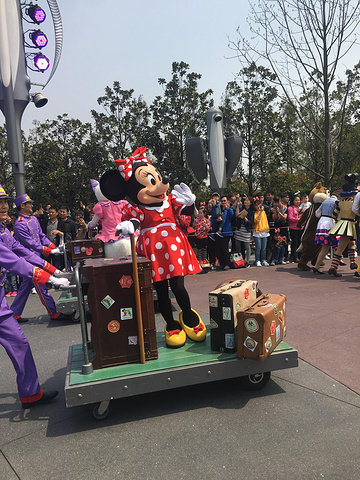 看完演出,距离我们第一次拿FP已经过去了两个小时,所以我们又可以拿FP了,第一个FP本来计划的“飞跃地平线”已经失败了,所以这次一定要拿到上海迪斯尼第二火的项目“创极速光轮”的FP,火速赶到“明日世界”区域,需要提醒大家的是上海迪斯尼每个区域都是统一一个地方拿FP,网上有人吐槽不好,可鑫妈觉得还OK啊,至少拿不到这个项目还可以换一个项目拿。谢天谢地,终于拿到了“极速”的FP,预约时间是晚上七点一刻的样子。拿了FP差不多已经接近中午十二点了,而我们第一个FP的游玩时间是12点半,一问马上要开始巡游了,而且“明日世界”是巡游的起点,看完巡游再去玩FP“雷鸣山漂流”应该刚刚合适,所以索性就在“明日世界”路口占据最好的位置,等着看巡游。上海的巡游跟鑫宝以前在香港和美国看的都还是有很大的不同,当然米奇一家是永远的主角,但是上海还加进了鑫宝最爱的“冰雪奇缘”,以及“花木兰”、“尼莫”等,感觉比其它几个地方的巡游人物都更新,因为鑫宝对迪斯尼动画片都很熟悉,所以这也是她大爱的项目。看完巡游,赶紧飞奔至“宝藏湾”区域,我们的“雷鸣山漂流”FP已经到时间了。“雷鸣山漂流”有身高限制,鑫宝四岁还不能玩,其它五岁和六岁的小朋友就都已经ok了,正好同行有一位妈妈也怕刺激项目,所以她留下来看着鑫宝,我们剩下五人顺利进入FP通道。进去的人都买了雨衣,在项目入口处有卖,但鑫妈没买,其实这个项目毫无刺激可言,鑫妈坐在中间的位置,也一点没打湿(如果靠近漂流船的空缺处座位,水还是会打湿衣服的),这个项目说实话个人觉得非常一般。