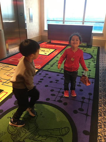 吃完饭差不多已经下午三点了,考虑到宝贝们都是起了个大早,这大半天也够累的,再加上鑫宝一贯有午睡习惯,所以我们决定回酒店午休(这就是住在园区内酒店的最大好处),中途经过“船奇戏水滩”,实际就是一个让小朋友玩玩水的游乐区,不排队,所以小朋友们又进去玩了玩水,里面还有一个海盗船滑梯,就这个滑梯小朋友都反复玩了四五次还不想走,可见迪斯尼对于小朋友来说真的很难有免疫力。
