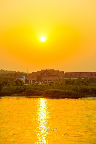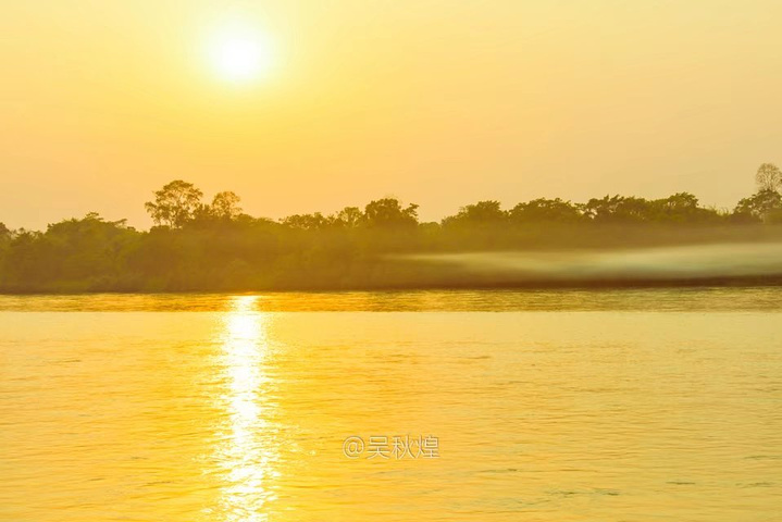 到傍晚7点多钟,此时正夕阳西下,再过一个多小时到就泰国清盛码头了,左边是老挝,右边是缅甸,前面的泰国,来自三个国家的夕阳,是不是特别的赞。