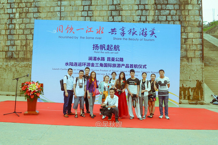 同饮一江水共享旅游美扬帆起航——澜湄水路+昆曼公路环游金三角国际旅游产品”首发团,从关累港出发,从西双版纳关累港乘船出发,经泰国清盛,清莱、缅甸大其力,老挝、会晒、磨丁,再由中国磨憨口岸返回入境。