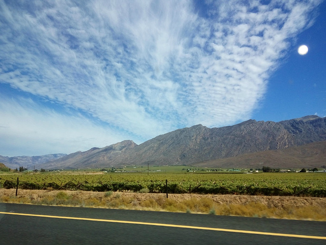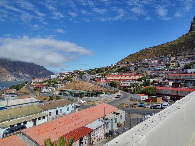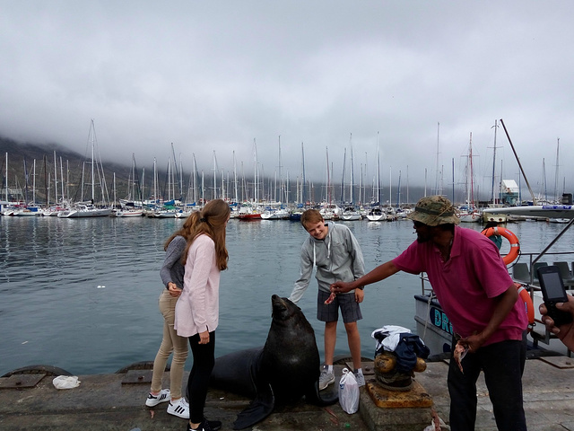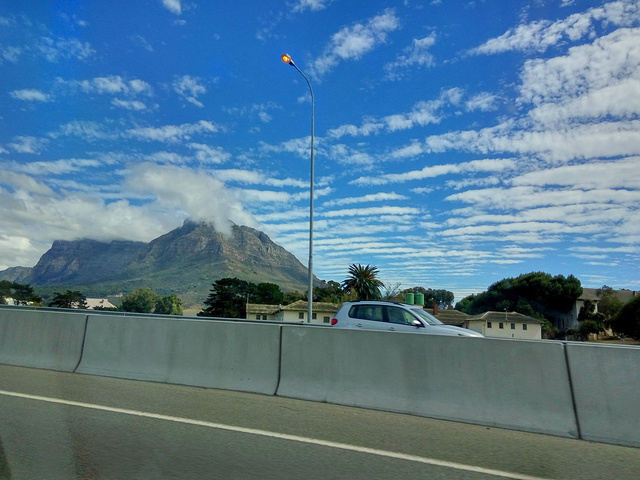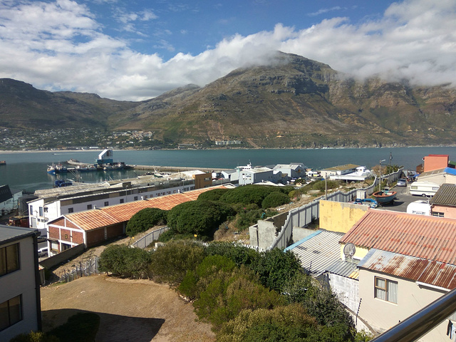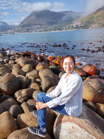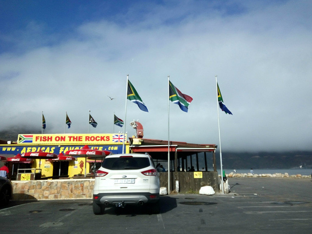 七点半出发找到一家肯德鸡快餐吃完早饭已八点半继续南下向开普敦行驶。向南走道路虽然高低起伏没那么大,但这边似乎干燥些。我们行驶了二个半小时,来到最后一座盘山道一眼望不到边的葡萄庄呈现在我们眼前,我环顾四周群山脚下,半山腰全是葡萄树,有的树上还挂有葡萄等人们去摘。一排排碧绿的葡萄树和一幢幢白色洋房遥相呼应,充满生机。公路两边各式葡萄酒广告显眼夺目,真是名副其实。翻过山路我们驶向一个隧道,隧道两边灯火通明,犹如夜景那样光彩夺目,行驶了十分钟出了隧道又来到一座盘山路,两边山高耸入云为我们让道。还有不到一百公里就要进开普敦市区了,儿子开车 用导航仪指路,开普敦的高速路弯道多,初来咋到根本找不到出口,我们绕了几个来回总算出去了,朝着儿子事先订好的民宿驶去,由于我们住的地方就在桌山脚下,我们朝着桌山方向行驶,一眼望去桌山山顶云雾缭绕,如仙境一般,绕过桌山被面眼前一条道路是又窄又狭长,叫m63路儿子慢慢行驶着,路两旁的松树高耸入云,我们仿佛进入梦中的仙境,啊太美了,美的叫人无法形容,这真是人间仙境,我们仨人都被眼前的美景所感叹。驶出仙境看到左边是码头,海面上各种帆船停靠在岸边。啊我终于见到大西洋了,我们立刻停车走到码头看看,刚下车一股浓浓的海腥味扑鼻而来,这里当地人正在宰杀刚从海边捕回新鲜的海鱼,哇这么多的鳕鱼被人们一块块切开,放入冰块包装运往各大酒店。这时有一群人在码头边不停拍照,我们也走过去看看,啊原来是海里边有几头海狮不停地喷出水面,它那皎杰油光发亮的皮蹿出水面引得人们争相拍照,我们也拍了很多视频,今天真是一睹海狮优美的身姿。最后我们来到住的民宿,这是一座三层楼房,面朝大西洋,称的上是海景房,坐在客厅里就能看到对面的桌山和停靠在码头的船只。到楼顶更是欣赏大海美景的好地方。你在上面躺在椅子上晒太阳,细品着一杯红酒纵览大海,桌山美景,那简直是美不胜收。我们还买了一条新鲜的鳕鱼,自己动手做饭,那个美别有丰味,房间设适也很考究,有双卫,进入房间就象自家一样好自在呀,今天到此,一会看海边夜景。