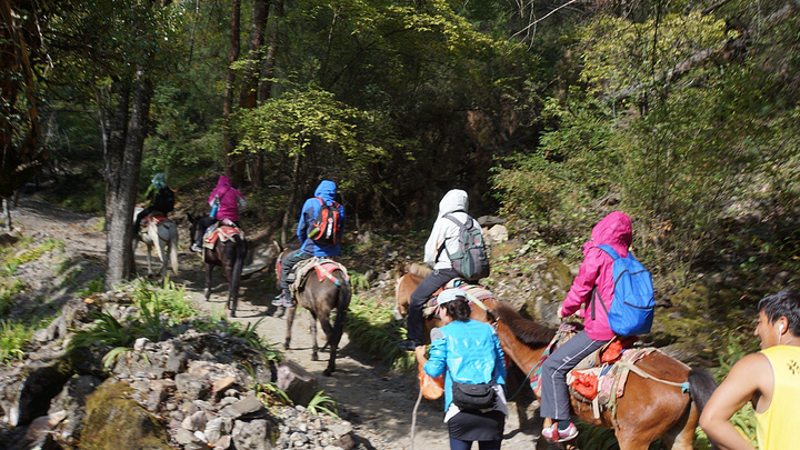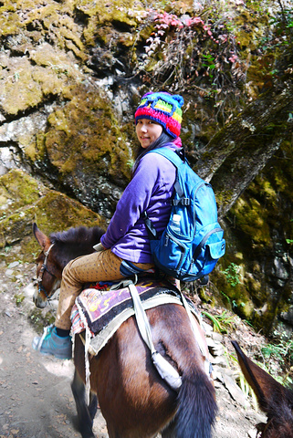 骡子都是一对一对的,一对的两只骡子会形影不离紧紧跟随。我和miss顾的骡子是一对的,她的骡子在前面,我的骡子怎么都不会超过她的,她的停我的也停,她的走我的也走,绝不逾矩,绝不!!还有,骡子喜欢走边边,就是走在外沿,一开始骑在上面好怕,生怕它一失足怎么的,后来你就会慢慢习惯,因为你发现可以绝对的信任它,它有足够丰富的经验,他知道该怎么走。其实这些骡子很聪明,他们认路的,根本不用人牵,之所以还有人跟着一起走,是因为怕他们老是停下来休息,主要是在后面赶。