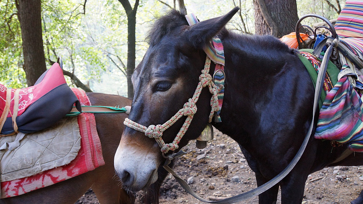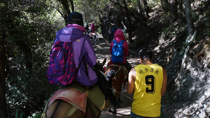 司机送我们到景区门口,然后就骑骡子上山,虽然觉得骡子很辛苦,但是我们自己确实没本事自己爬上去。一开始看到价格牌的时候被吓了一跳,单程居然要300块,我们计划着是不是骑单程就好了,后来发现,往返600块是国庆期间的价格,现在往返只要240块,这波动也太大了吧,行,好像我们又捡了便宜一样,呵呵。