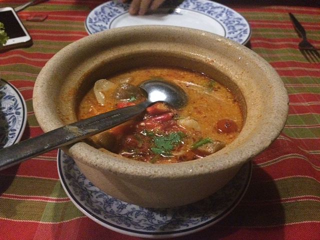 看完日落.临时决定去当地好玩又比较出名的餐厅享受晚餐.这间餐饮在PATTAYA比较有名.曼谷也有一家分店.除了味道大多数来源于他的名字.餐具与其他装饰的摆设都融入了CDS的一个主题.食物味道也不错..冬阴功一定.必须要点..来自游记曼谷芭提雅 轻松自由行