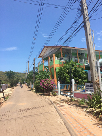 来到这里..其实可以坐三轮车去海滩..可是为了更好地看到当地的文化景色.我们选择了步行去海滩.经过当地的民房..不同的颜色.加上蓝天白云大自然做为背景.觉得非常舒适..除了太热以外..