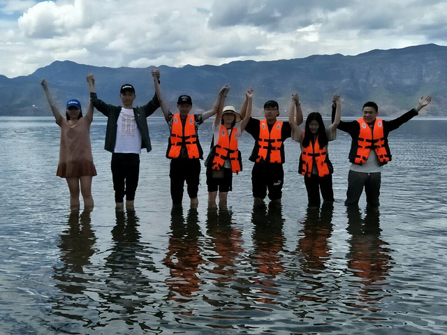 首先让我根据这张照片从右至左来介绍一下我们战队成员的职责,不用说第一个当然是从上级指挥部(他们六个)接收任务的所谓的“队长”,名为队长,实则就是各地的"联络员“,再说透一点就是安排他们的整个吃喝拉撒,同时也是这篇游记的作者(右一)。第二个就是我们队的会计小李子同学,你可别小看她了,她可是我们队的重量级人物,当然只是女生中最重的(右二)(哈哈,趁机黑她一下)。队中的另一重量级人物一眼望去就能尽收眼底了,但是我叫小胖子,更显我的含蓄(右三)。再左边就是我们队的超级无敌嘻哈大傻妹,无论有事没事她总是能嘻嘻哈哈的不停,同时她号称是湘阴(被洪水淹了的家乡)摄影金像奖得主,毫无疑问这次出行她便扛起了摄影的重担,(其实就是拿个没有像素的手机,一连可以拍一二十张的那种水平)(最中间的媚媚),接着顺流左上,便是著名歌手“王杰”(是想起了不浪漫罪名还是想起了被人下毒)(左三),他跟小胖子是名副其实的酱油组合。最后就是狗粮组合了,大鸟和他的小可爱(打起我的手都麻),他们主要任务就是没事撒一撒狗粮,哪天玩累了,干脆直接买了安全措施回客栈了,哈哈。(左一二) 风萧萧兮易水寒,感觉我写完游记就要与美丽的人间告别了。(貌似每个人都有黑到吧,哈哈。)