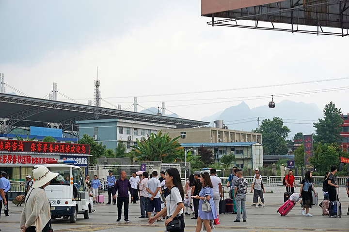 刚下火车便能看见去往天门山的索道在火车站上空飘过。