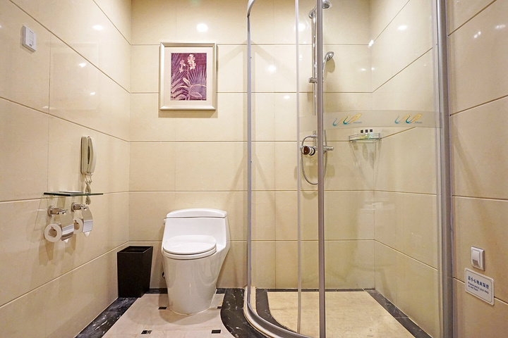 打开洗漱间的门,首先吸引我的便是那大大的浴缸,浴缸靠近卧室一侧,巨大的玻璃窗有一个可以升降的电动卷帘,既可以保护私密性也增加娱乐性,想象一下,在景区暴走一天之后,回到酒店,泡在浴缸中舒缓一天的疲累,透过玻璃窗还能看看电视,多么舒服悠哉的一件事情啊。干净无水渍的洗漱台,摆放整齐统一的洗漱用品,淋浴区域和抽水马桶也是干湿分离,很好的做到了共用性。