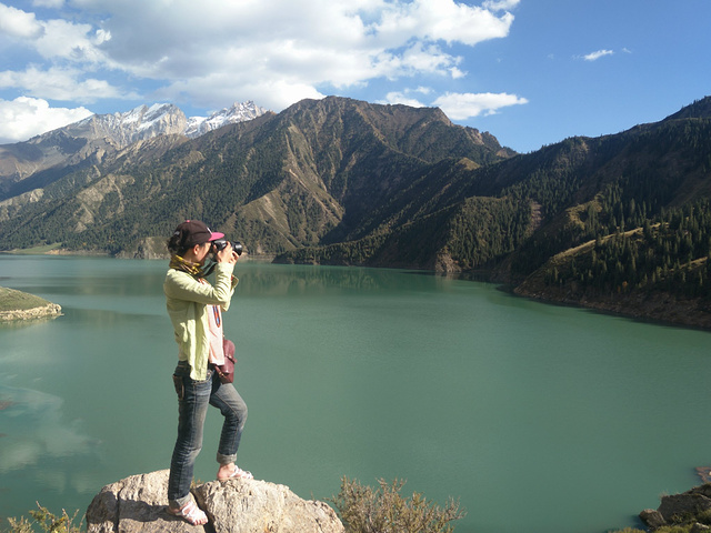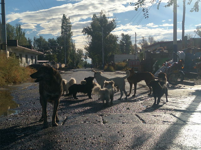 我对天山天池没有太大兴趣,于是和老孟在景区门口等同伴,我们两人在外面瞎玩,拍狗狗去了