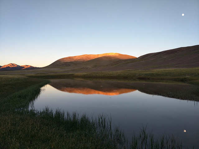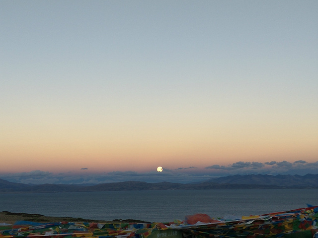 上图这张可不是太阳☀,而且月亮🌙,这种景象就是说的“海上升明月,天涯共此时”,圣湖我们没进景区,在路边看的,因为老孟说“如果你信佛你就进去,如果你只是想看风景就不建议进,因为他没有之前的当惹雍措的线条多,拍照好看”,于是我们听了老孟的话没有进去,在路边看到了这样的景象