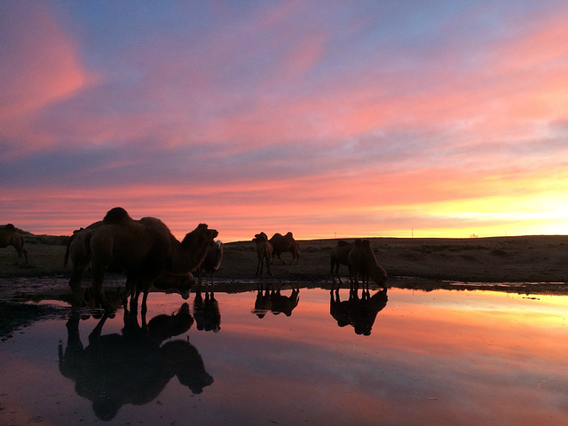 这两张日落,是用手机拍的,用了不同的白平衡,你们更喜欢那种呢?我亲眼看到的是粉色,新疆的日落特别美,粉蓝,粉紫色的,格外漂亮