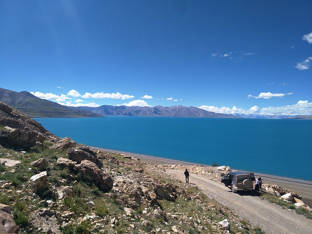 当惹雍措也是我最爱的地方,宁静得能听到自己的心跳声,当地人看到我们像在看动物园的动物一样,因为来的游客少他们会很亲切的,老孟有个很好的地方,他不会催你走,除非是会耽搁后面的行程他会催下你,反正这趟新藏线之旅我是没被催过,一直都是玩到自己上车再出发的。