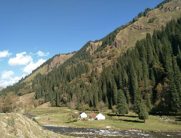 再走后半段的独库公路,经过那拉提草原,中间有段路有很多的哈萨克族的帐篷,这次没有进草原(笑cry)