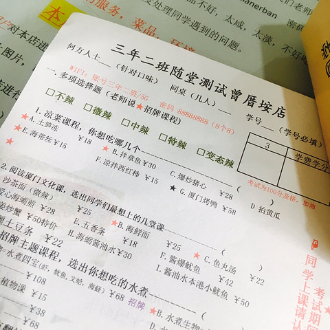 第三天 我们睡了一个懒觉 到10.00左右才起床 本来说要去厦大 因为厦大周一到周五 只有12.00到14.00才可以进去 所以我们打算11.50到厦大就好了 结果到公交车站牌那里 有人说周一到周五 限制人数 所以现在去排队也进不去了 于是我们就去吃了好多人推荐的三年二班餐厅 就在曾厝安里面 环境满分 菜品 嗯 98分好了