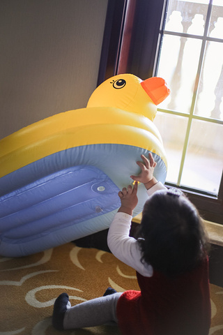 本想让小鱼儿午睡一会儿的,结果毫无睡意,我们就出门在酒店溜达溜达